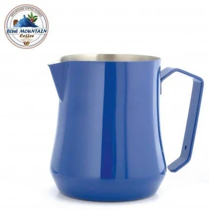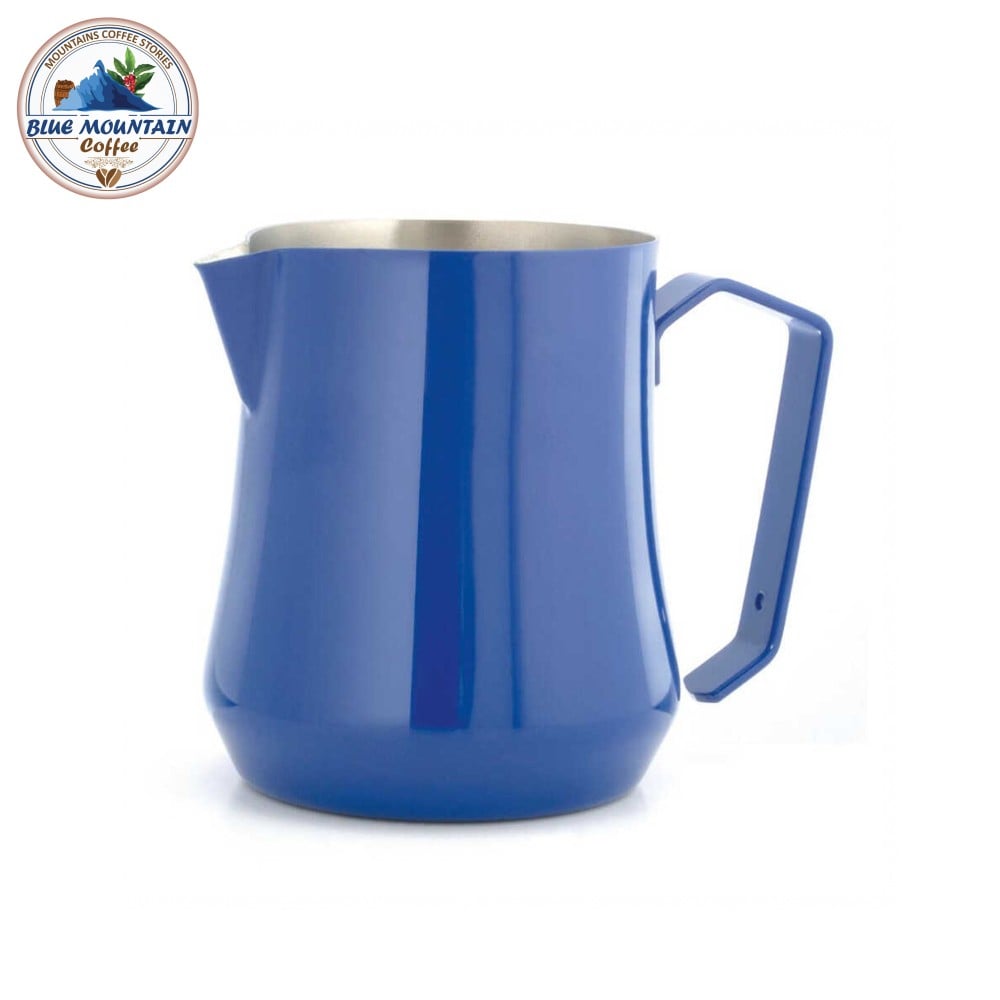 إبريق حليب أنيق التصميم, بسعة 500 ملغ, ولون أزرق ساحر, يمكن استخدامه في صناعة مختلف أنواع مشروبات القهوة وخلطاتها اللذيذة.