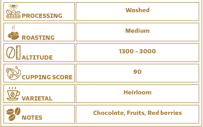 Main Type: Arabica , Native Heirloom Varieties, gesha